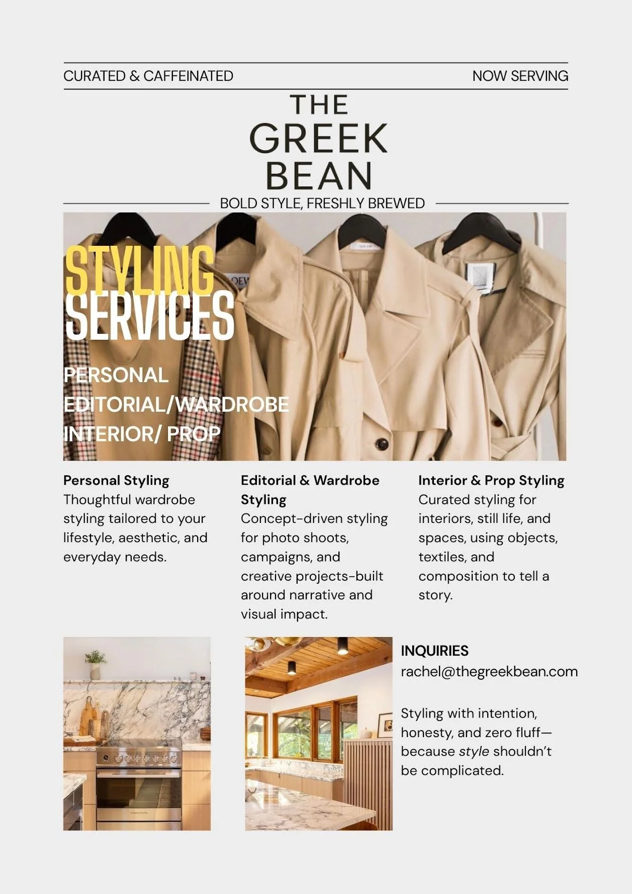 Email rachel@thegreekbean.com for all inquiries